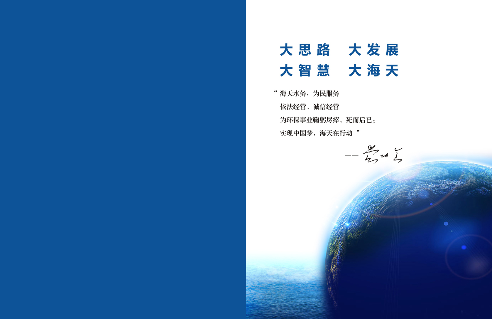 在生態(tài)文明建設(shè)上升為黨和國(guó)家發(fā)展戰(zhàn)略的新形勢(shì)下,中央關(guān)于綠色發(fā)展新理念新戰(zhàn)略新布局,以及國(guó)家五部委《關(guān)于進(jìn)一步引導(dǎo)民間資本進(jìn)入城市供水、燃?xì)狻⒐?、污水和垃圾處理行業(yè)的意見(jiàn)》,為海天更大發(fā)展提供了難得的歷史機(jī)遇,我們確立了“大思路、大發(fā)展、大智慧、大海天”的發(fā)展戰(zhàn)略,努力打造成為具有世界影響力的環(huán)境綜合服務(wù)企業(yè)。弘揚(yáng)海天文化、做新時(shí)期合格的海天員工、提升軟實(shí)力,成為實(shí)現(xiàn)集團(tuán)戰(zhàn)略目標(biāo)的內(nèi)在要求。合格的海天員工,首先是對(duì)海天文化的高度認(rèn)同,主動(dòng)融合和自覺(jué)垂范,用海天文化規(guī)范自己,塑造自已,遵循海天理想宗旨,堅(jiān)守海天價(jià)值觀,弘揚(yáng)海天精神,實(shí)現(xiàn)海天目標(biāo),追求自我價(jià)值的最佳體現(xiàn),努力使自己成為海天文化的名片,這也是時(shí)代發(fā)展對(duì)海天員工的必然選擇。